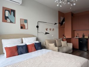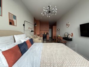 Квартира оснащена всем что может понадобиться для жизни. Удобная двухспальная кровать 160/200, раскладной диван 140/200 для приятного и сладкого сна. Белоснежное отельное белье и пушистые подушки и одеяла.
