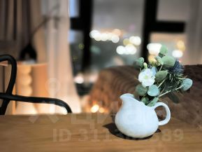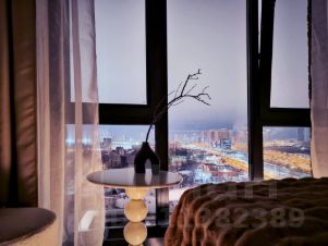 Панорамное окно в пол с видом на вечерние огни мегаполиса