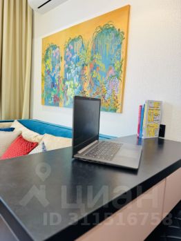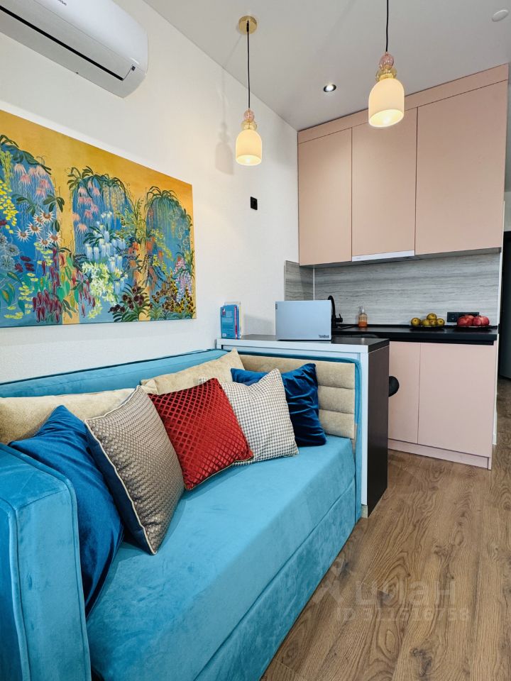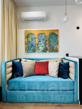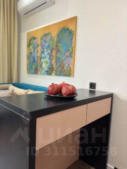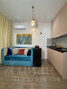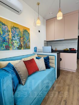 Студия оформлена в дизайнерском стиле, есть все для комфортного проживания, новая стиральная машинка, встроенный холодильник, большой встроенный зеркальный шкаф, двуспальный раскладывающийся диван, телевизор, кондиционер. Все новое, сдается впервые.