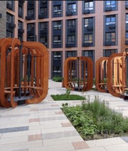 Охраняемая территория, есть внутренний двор с лаунж зоной, площадкой с тренажерами, шезлонгами, теннисным столом и детской площадкой.
