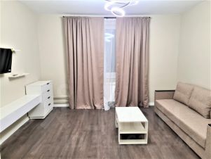 В квартире выполнен евроремонт в светлых тонах с использованием качественных материалов. Планировочное решение следующее: комфортабельная кухня с плитой, духовым шкафом и вытяжкой, с выходом на лоджию с отделкой; шикарная гостиная с большим диваном и телевизором; спальня с двуспальной кроватью, шкафом и телевизором; комната под кабинет или вторую спальню с диваном, комодом и выходом на вторую лоджию с отделкой; раздельный санузел с ванной и стиральной машиной; просторный холл с холодильником и двумя шкафами для одежды.