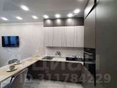 Квартира 64 квадратных метра, распашонка. Отдельная комната-спальня и комната , совмещённой с встроенной кухней.