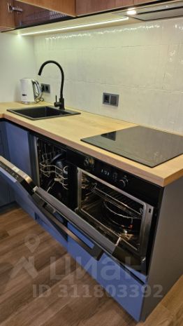 Помимо кухни (плита, духовка-микроволновка) и спального места, в квартире уже установлены: кондиционер, холодильник, стиральная и посудомоечная машины, бризер, телевизор. Есть wifi.