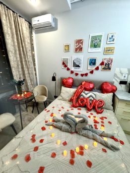 1) оформление апартаментов к романтическому свиданию (см. пример в фото);