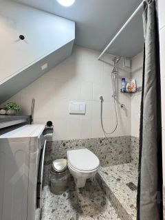В ванной комнате Вас ждёт полный комплект средств гигиены (шампунь, гель, мыло, бумага). Для Вашего комфорта мы подготовили фен. Также есть стиральная машина.