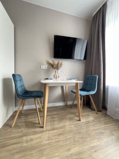 Планировка студии продумана так, чтобы Вы окунулись в атмосферу Москвы - широкие окна, абстрактные вазы и картина, лампы. Также есть кондиционер!