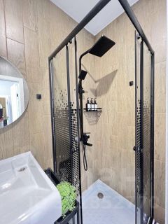 В ванной комнате Вас ждёт полный комплект средств гигиены (шампунь, гель, мыло, бумага). Для Вашего комфорта мы подготовили фен. Также есть стиральная машина.