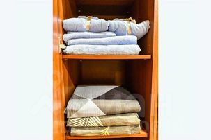 Двухспальный диван, двуспальный кровать, вместительный шкаф, сушилка для белья, фен, оборудованная кухня, холодильник, полный комплект посуды для приготовления и приёма еды, стиральная машина .