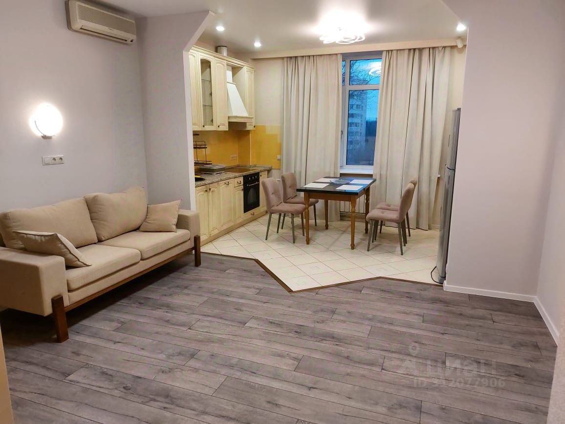 Предлагаемая квартира расположена на шестом этаже (окна выходят на двор, парк Дубки и Тимирязеский лес), ее общая площадь составляет 78 квадратных метров. В прихожей расположен большой шкаф-купе, на кухне-гостиной полностью оборудованная кухня (варочная поверхность, духовой шкаф, посудомоечная машина, холодильник, микроволновка, вытяжка), стол со стульями, в гостиной части - диван и телевизор. В обеих спальнях расположены полноценные кровати, в одной из спален большой шкаф для одежды. В малом санузле унитаз, раковина и стиральная машина; в большом ванна, унитаз, раковина, а также резервный бойлер. На одной из лоджий мини-спортивный комплекс и небольшая зона отдыха. Все комнаты оснащены кондиционерами.