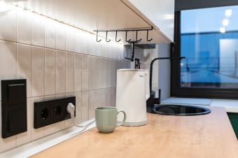 - Полностью оснащенная кухня, где имеется всё необходимое для приготовления любимых блюд: холодильник, кофеварка, микроволновка, чайник, вся необходимая посуда и столовые приборы. Мы заботимся о вашем комфорте, предоставляя: чай, кофе, сахар, соль, специи.