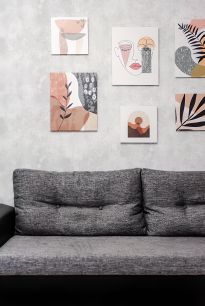 Современная мебель, двуспальная кровать, бытовая техника, скоростной WI-FI, спутниковое TV, гладильная доска, сушка, оборудованная кухня, полный комплект посуды для приготовления и приёма еды, фен