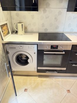 В квартире имеется два кондиционера и подогрев полов. Вся встроенная бытовая техника: посудомоечная машина, стиральная машина, духовой шкаф и микроволновая печь.