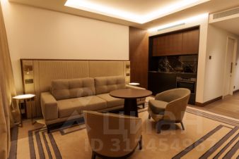 Апартаменты состоят из двух комнат: спальня с двуспальной кроватью шириной 200 см, вторая комната с раскладным диваном размер спального места 190200 см, двумя креслами и столом. В апартаментах уложен паркет, в ванных комнатах использован мрамор. Установлены светильники и аксессуары. Планировка включает спальню, гостиную зону, кухню, два санузла, гардеробную зону. Работает Wi-Fi.