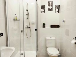 В квартире есть: необходимая бытовая техника (стиральная машина, холодильник, фен, смарт-телевизор, утюг, микроволновая печь, чайник), укомплектованная кухня с обеденной зоной с чаем, кофе, горячим шоколадом и цикорием, двуспальная кровать с матрасом и постельным бельём, Wi-Fi, гигиенические принадлежности (зубная паста, тапочки, гель для душа, полотенца), унитаз и душевая кабина.