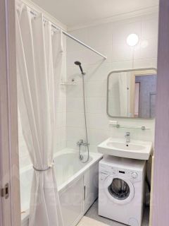 Имеются 2 телевизора, роутер, холодильник, варочная панель, духовой шкаф, стиральная машина, два кондиционера, встроенные шкафы-купе.