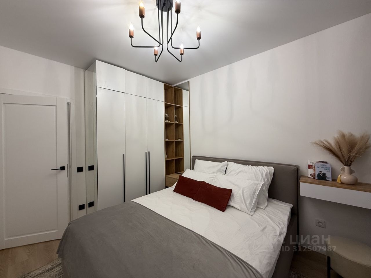 В квартире имеется раскладной диван, два шкафа для удобного хранения вещей (один в спальне, другой в прихожей), стиральная машина, двухспальная кровать, прикроватные тумбы, люстры, обеденный стол, стулья, тв тумба со шкафом, кондиционер, пылесос, обувница.