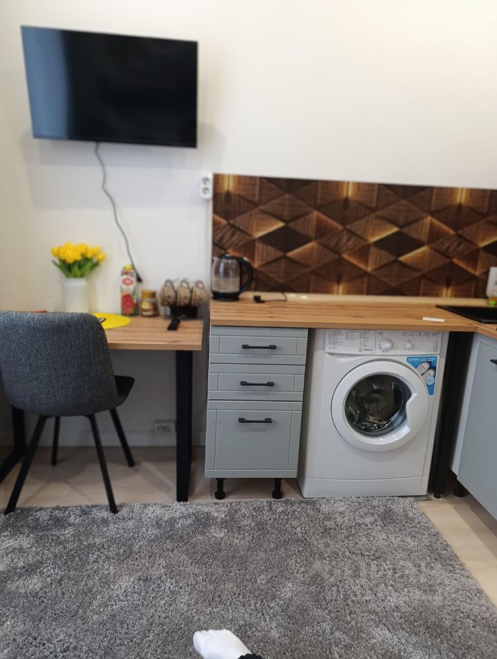 Сдаётся уютная студия площадью 14 кв. м. в рабочем посёлке Ильинский, по адресу: Пролетарская улица, 49/1. Апартаменты расположены на 2 этаже 4-этажного дома. Высокие потолки 3 метра создают ощущение простора. До станции метро Быково всего 4 минуты на автомобиле, что делает транспортное сообщение очень удобным.