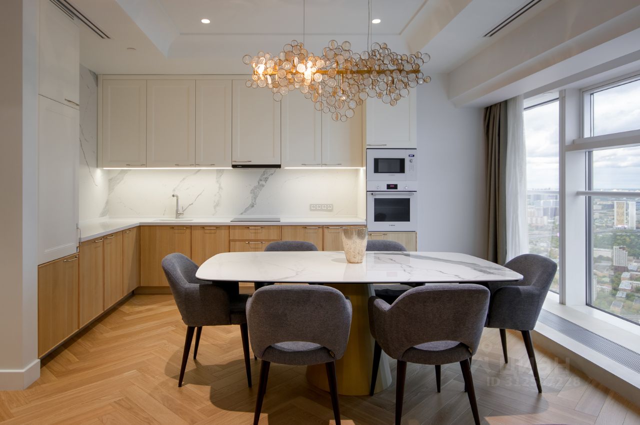 Функциональные апартаменты с современной отделкой в стиле неоклассика, панорамным остеклением, полностью укомплектованы бытовой техникой и мебелью.