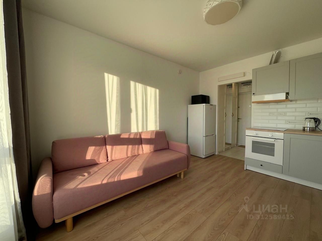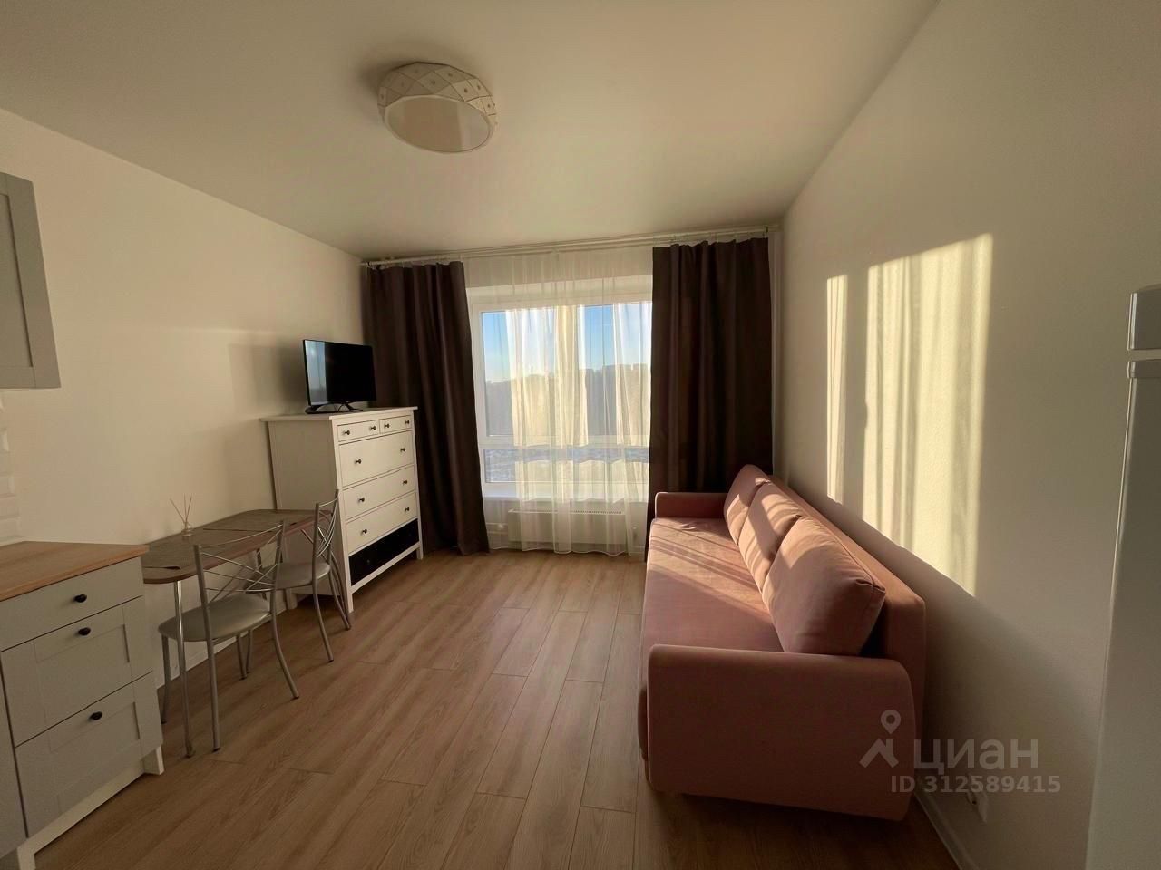 Сдаётся уютная студия в современном жилом комплексе на Саларьевской улице. Квартира расположена на 6 этаже 25-этажного панельного дома, построенного в 2020 году. Общая площадь составляет 20 кв. м, из которых 14 кв. м приходится на жилую зону и 4 кв. м на кухню. Высота потолков — 2.8 метра, что создаёт ощущение простора. Окна выходят во двор, поэтому в квартире тихо и спокойно.
