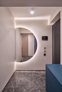 Большое количество окон, квартира очень светлая и уютная. Много искусственного точечного света.