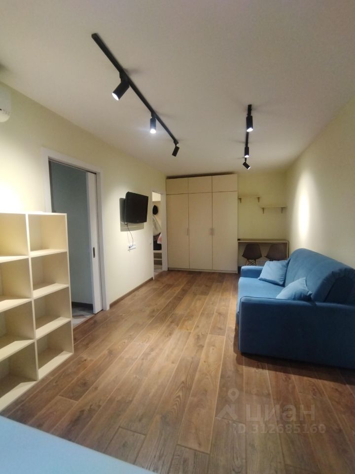 Кухня и комната оснащены необходимой мебелью и техникой, включая посудомоечную и стиральную машины, холодильник, варочную панель, в комнате большой шкаф для сезонного и повседневного хранения вещей, раздвижной ортопедический диван и рабочее место со стульями. Нетипично просторный санузел с большим зеркалом. Установлен кондиционер. Вид из окон - тенистый двор и детская площадка. Квартира также имеет застекленный балкон.