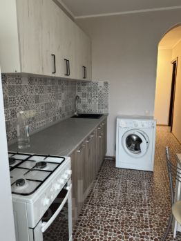 Кухня площадью 9 квадратных метров, оснащена плитой, духовкой, холодильником, стиральной машиной. В жилых комнатах есть вся необходимая мебель: кровать (140*200) с подъемным механизмом, диван, 2 шкафа, стеллаж, журнальный столик. Санузел совмещённый, оборудован ванной.