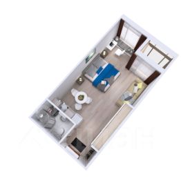 Заселение: с 14:00, выезд до 12:00. Бесконтактно 24/7.