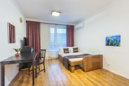 Квартира оборудована всем необходимым для комфортного отдыха. ЖК телевизор с большим пакетом каналов, двуспальная кровать, шкаф для хранения вещей, набор косметических принадлежностей, вся необходимая бытовая техника, посуда и столовые приборы.