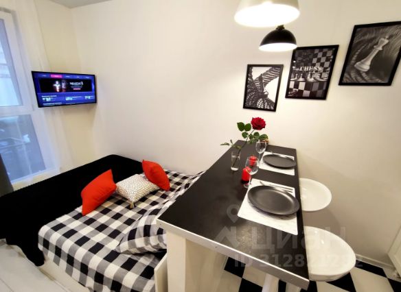 Из удобств: двуспальная кровать , авторская барная стойка и барные стулья, Wi-Fi телевизор со Smart-TV, холодильник, встроенная варочная панель, микроволновая печь, чайник, необходимый набор кухонных принадлежностей .