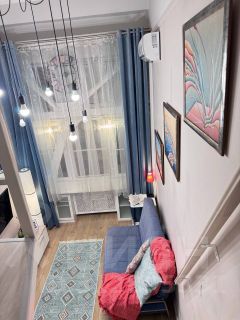 В студии есть двуспальная кровать и диван с качественным постельным бельём - идеальное решение для семейного отдыха или проживания компании.