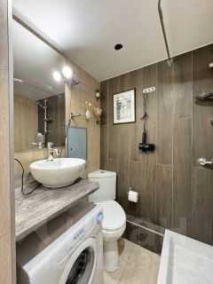 В ванной комнате Вас ждёт полный комплект средств гигиены (шампунь, гель, мыло, бумага). Для Вашего комфорта мы подготовили фен. Также в квартире есть стиральная машина.