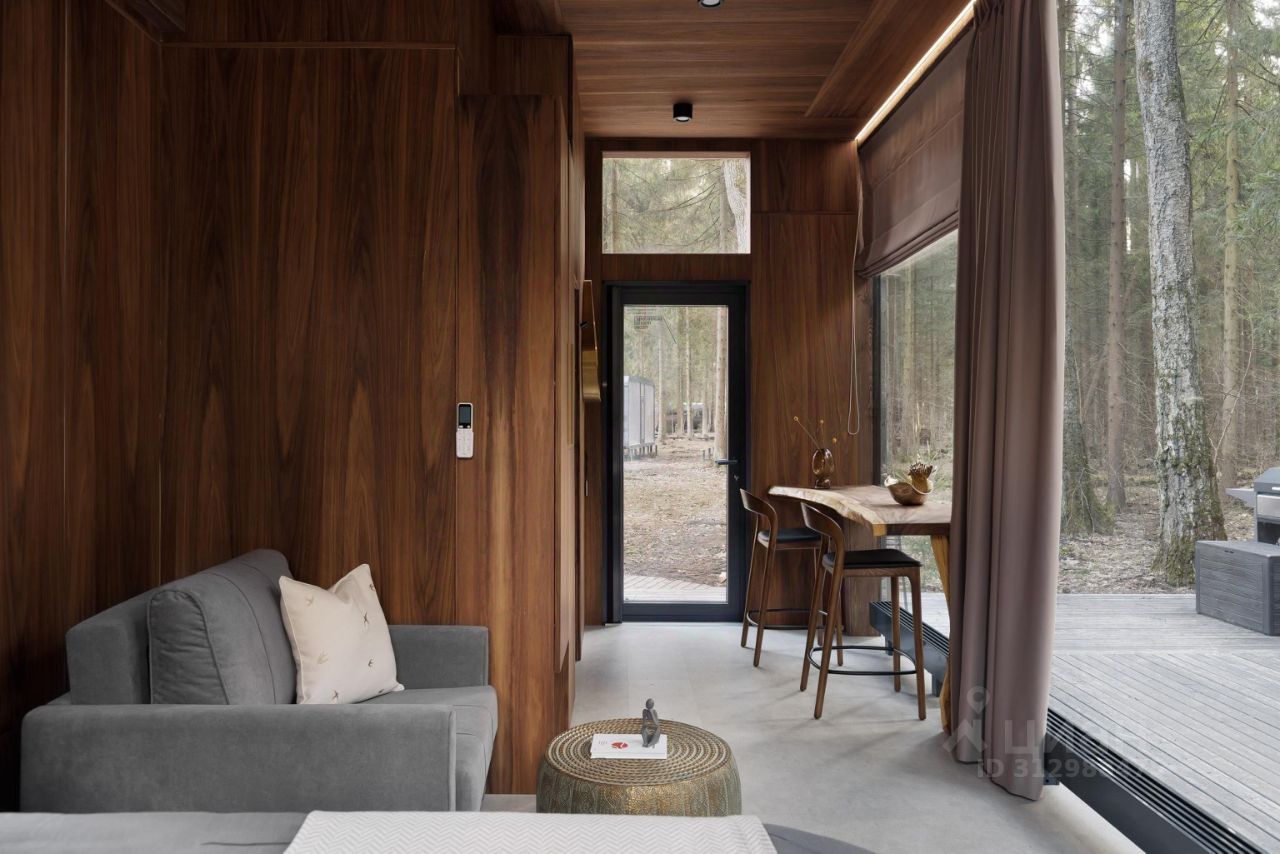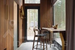 Эко-модули обладают уникальным архитектурным стилем за счет больших панорамных окон, эргономичной планировки и просторных веранд, что в совокупности позволяет насладиться живописными видами природы и свежим воздухом леса.