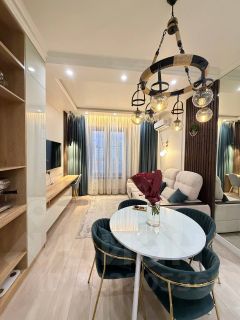 В квартире продумано всё до мелочей. Дизайнерская мебель, качественная техника, аудио система, всё для того чтобы почувствовать себя Царём).