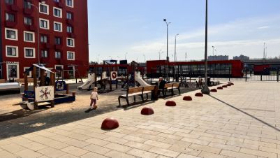Во дворе дома находятся магазины ВкусВилл, винлаб, минимаркет, wildberries и т.д