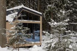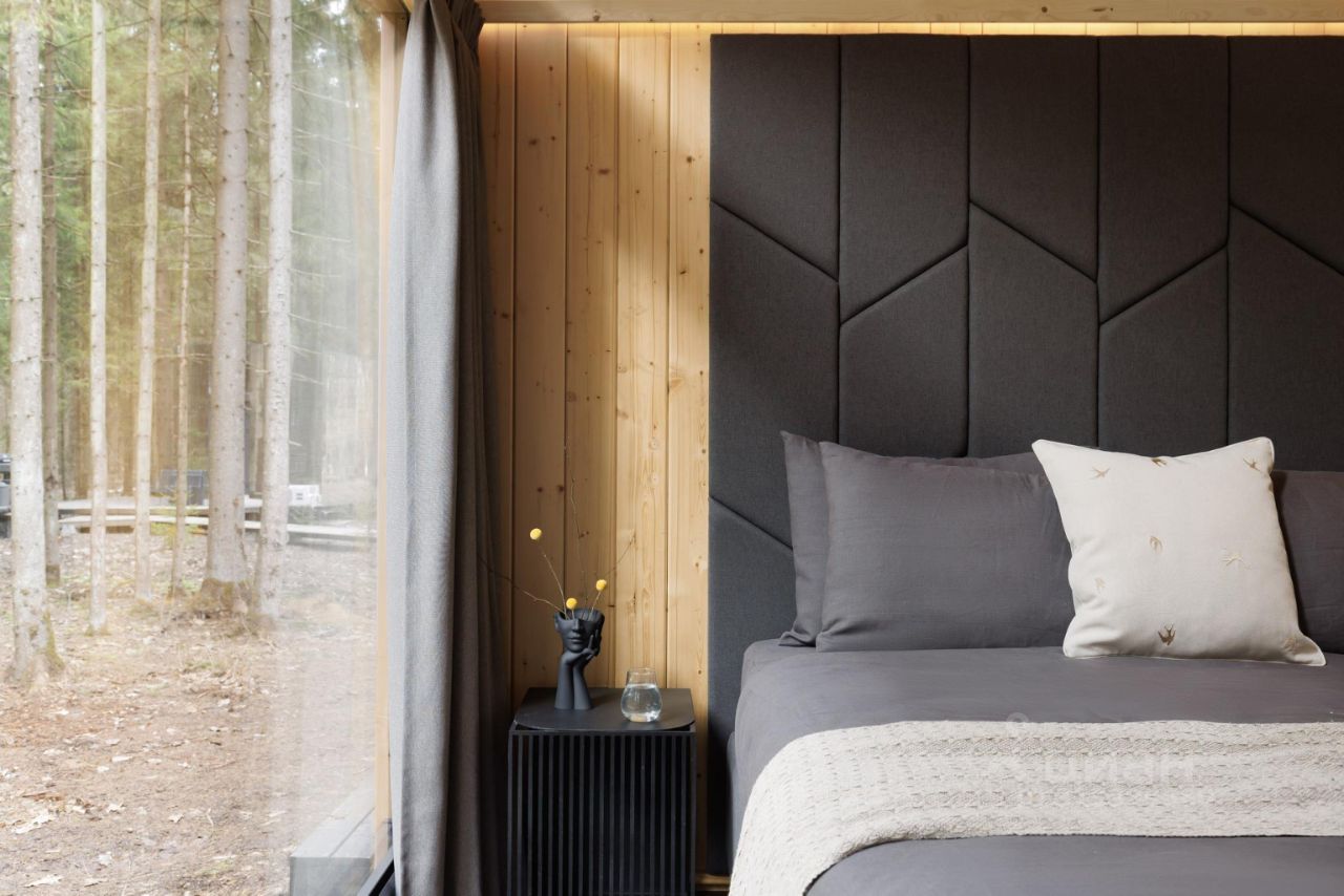 Эко-модули обладают уникальным архитектурным стилем за счет больших панорамных окон, эргономичной планировки и просторных веранд, что в совокупности позволяет насладиться живописными видами природы и свежим воздухом леса.