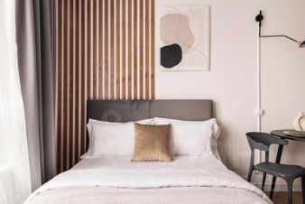 Квартира для 2 гостей. В квартире есть мультимедиа: Wi-Fi, телевизор со Смарт-ТВ, бытовая техника: духовой шкаф, холодильник, плита, фен, утюг, стиральная машина, микроволновая печь, посудомоечная машина, кондиционер. Дополнительно: рабочий стол для ноутбука, полотенца, постельное бельё, средства личной гигиены, комплект посуды и столовых приборов. Спальное место: кровать и раскладной двуспальный диван, в наличии шторы блэк-аут.