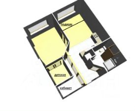 Проходная Кухня соединена с гостиной в единое помещение +кабинет ( евротрешка)