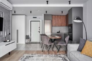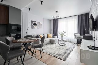 - кухня со всей техникой: встроенный холодильник, посудомоечная машина , духовка, варочная панель, СВЧ -печь;