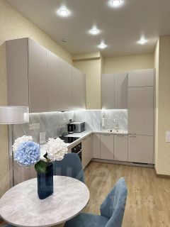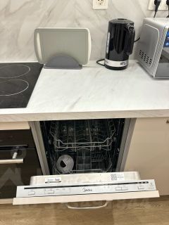 Квартира оборудована современной бытовой техникой для удобного и комфортного проживания как одному, так и с семьей: микроволновка, посудомоечная машина, стиральная машина, холодильник, духовой шкаф, варочная панель, чайник, кондиционер.