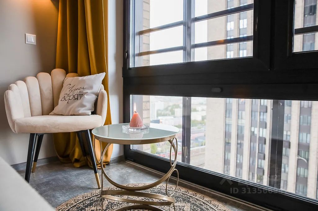 Комфортная и мягкая дизайнерская студия на 30-м этаже ЖК Савеловский Сити выполнена в пастельных тонах.