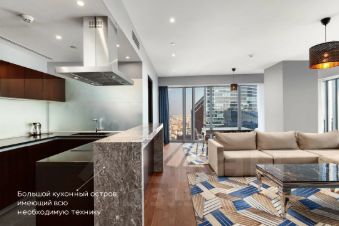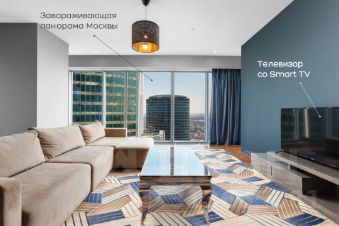 • Апартаменты находятся в Москва-Сити, предлагая великолепный вид на столицу.
