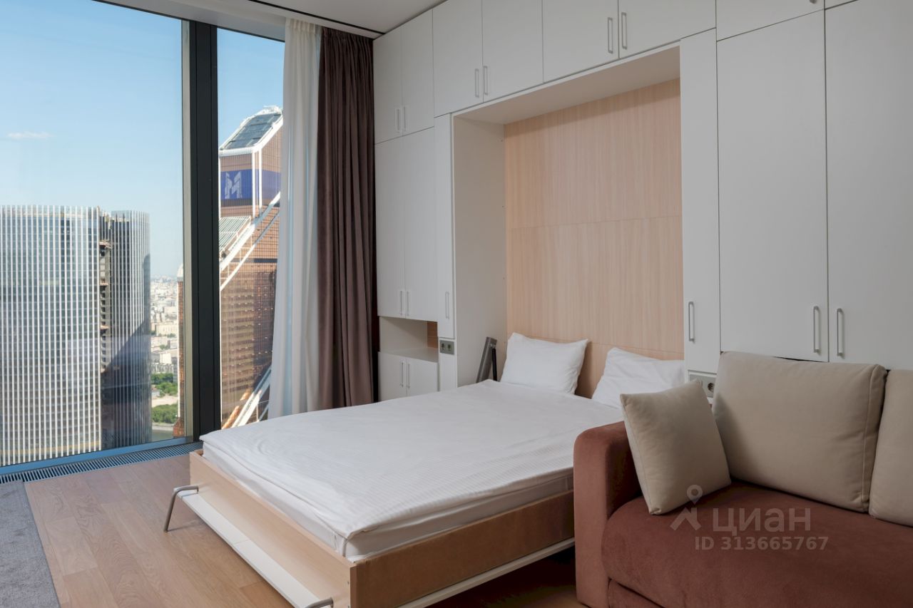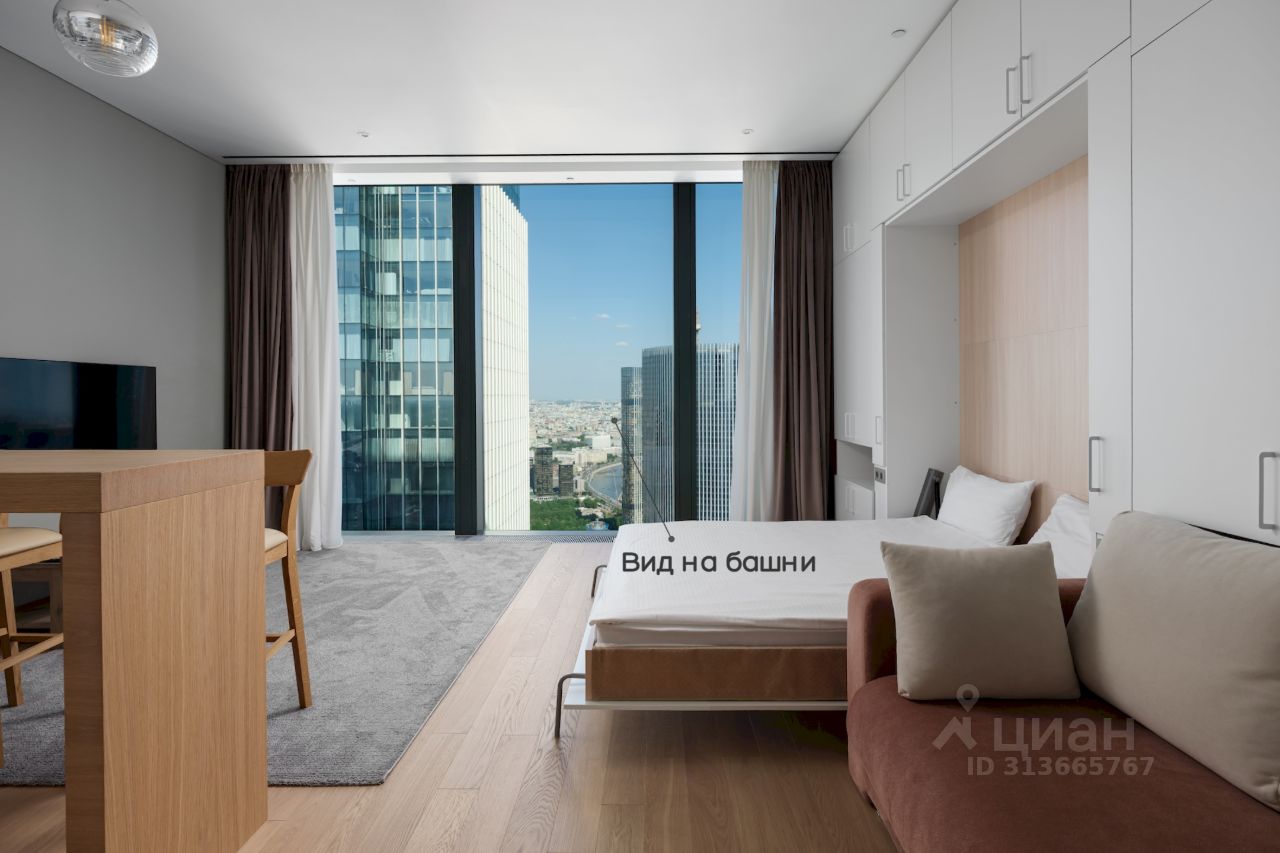 • Апартаменты находятся в Москва-Сити, предлагая великолепный вид на столицу.