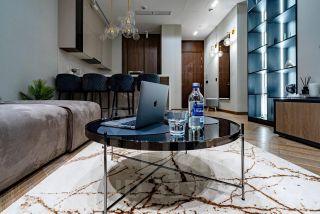 Солнечные апартаменты с дубовым премиальным паркетом и видом на север Москвы - ночные огни за окном создают волшебную атмосферу, ощутите как город сияет под Вашими ногами. Продумано все до мелочей для Вашего полного комфорта, зайдя в апартаменты, выходить уже не захочется, в 80% случае гости продлевают аренду или возвращаются именно в эти апартаменты, так как уют и атмосфера особенная. Изменения освещения и подсветки в вечернее время изумительны на фоне больших окон с видом на город.