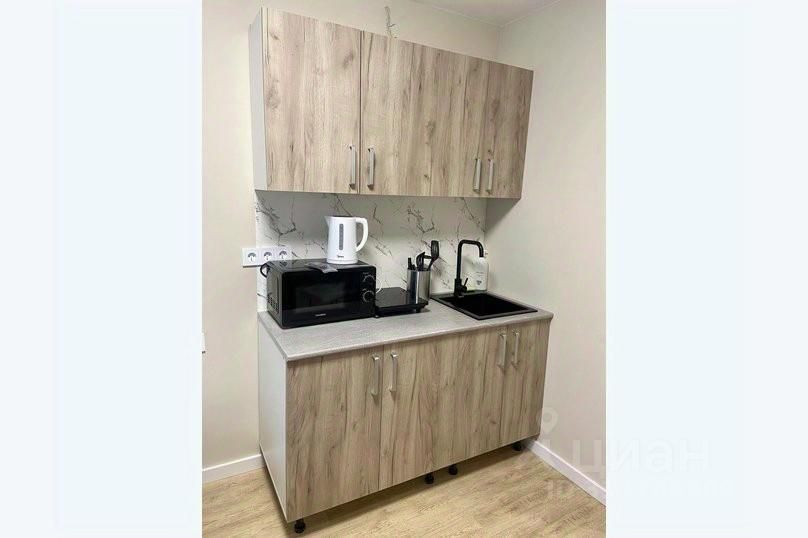 - Кухня с холодильником, плитой, микроволновкой, чайником и посудой