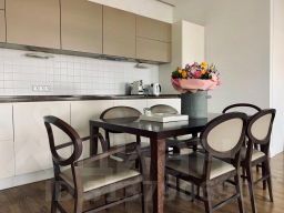 Пространство светлое, с видом на крыши домов и небо города, бежевые оттенки с интерьерными картинами, итальянская мебель, много места для хранения, последний этаж, красивый подъезд, парковка во дворе за шлагбаумом