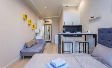 Апартаменты находятся на 4 этаже. Площадь 18 кв.м. Размещение до 2 человек. Шикарные апартаменты с новым дизайнерским евро-ремонтом, в светлых тонах, со всей необходимой мебель: двуспальная кровать (140на 200), встроенная кухня, душевая, импортная сантехника, стеклопакеты.