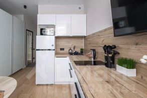 Кухня со всей необходимой посудой и техникой, где при желании вы сможете комфортно приготовить еду