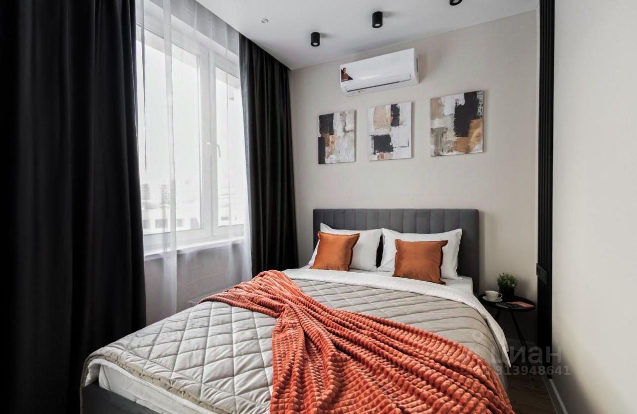 Уютная спальная зона с двуспальной кроватью, чистым постельным бельем, кондиционером, бесплатным Wi-fi и смарт ТВ