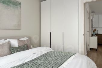 В спальне есть вместительный шкаф, кровать с подъемным механизмом с большим ящиком для белья и постельных принадлежностей.