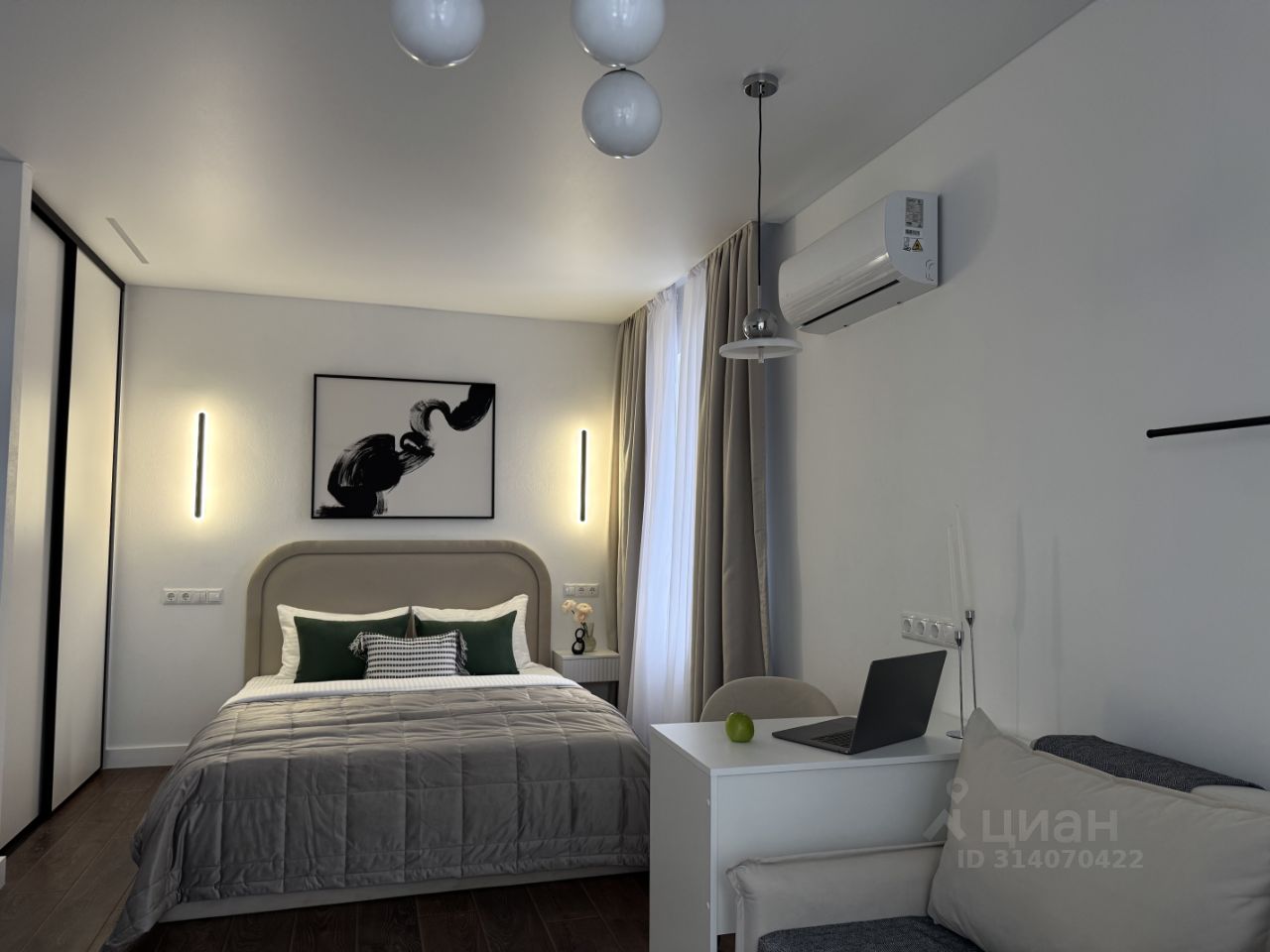 2. Широкая двуспальная кровать с ортопедическим матрасом, диван, высокоскоростной Wi-Fi, телевизор Smart TV, компьютерный стол, кондиционер.